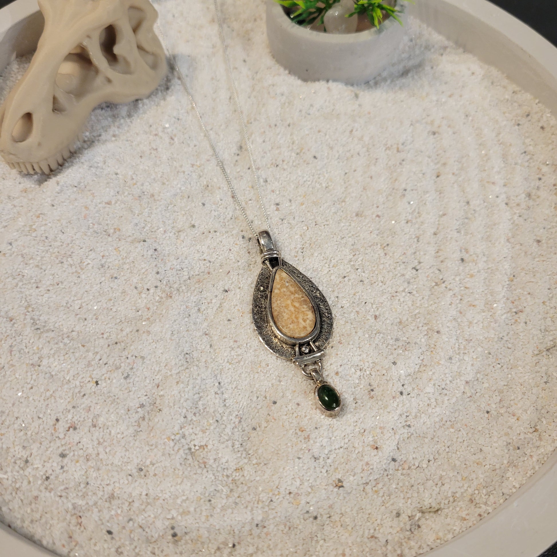 Sterling Nephrite Jade and Fossil Ivory Necklace